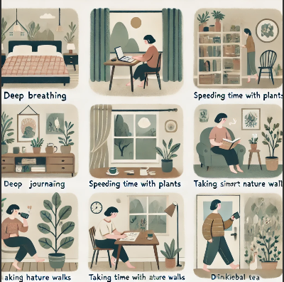 일상에서 잠시 여유를 가지고 휴식을 취하세요. 커피 한 잔을 마시거나 산책을 통해 재충전의 시간을 가지면 스트레스 관리에 도움이 됩니다.